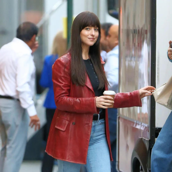 Emily Ratajkowski Suede Leather Shearling Coat for Women